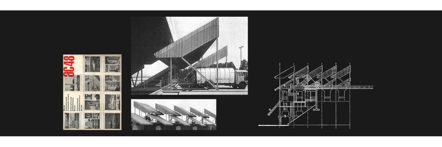 “The corrugated asbestos-cement roof serves not only to protect the machines but is also intended to obviate the conspicuous cloud of dust which frequently tends to rise when refuse vehicles deposit their load.” … Read More Refuse Reduction Plant / Städtisches Hochbauamt Wiesbaden / 1967