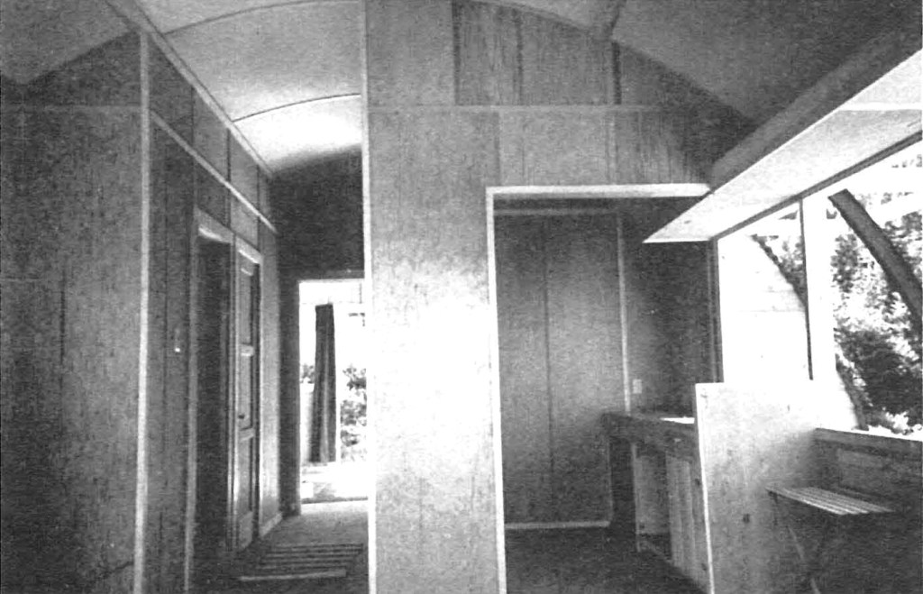 Let’s look at the Quonset again with a more analytical attitude and an open mind. Let’s stop thinking of the Quonset as a stop-gap emergency shelter or as a poor relation to a real house. To begin with, the contemporary approach to a problem usually evolves from basic forms. (The half cylinder Quonset is on a par then with our more frequently used cube forms.) In this case the pure form is constructed of steel ribs and corrugated metal. Structurally sound and durable, it needs only to be used with honesty, directeness and imagination. Let’s see what we can do with it by contemporary standards. […]