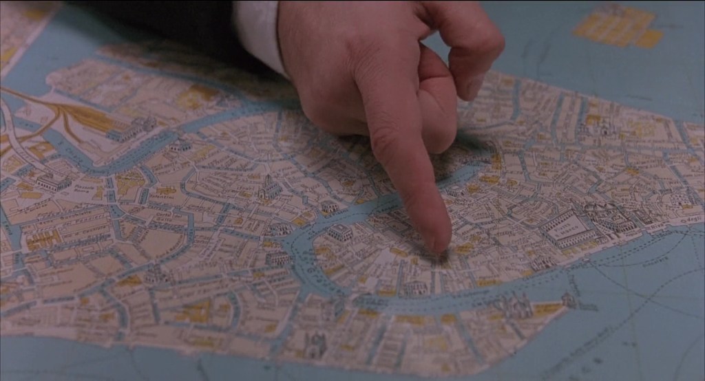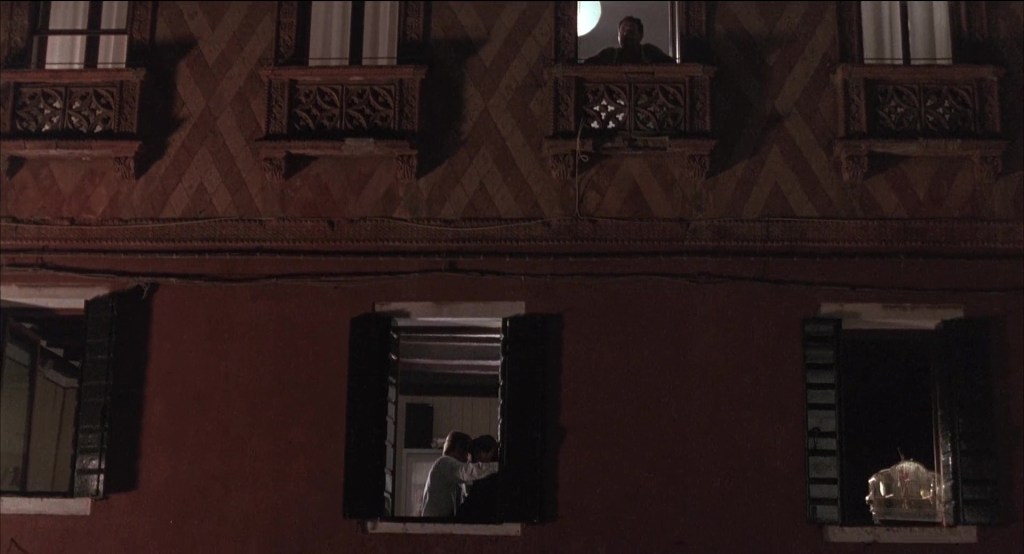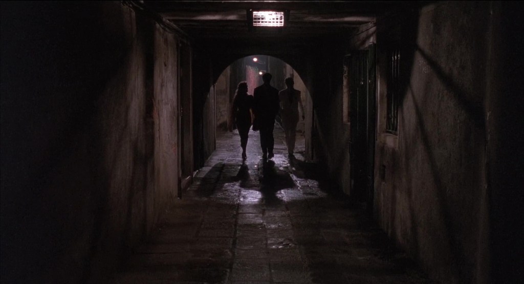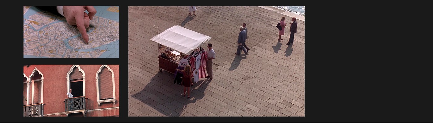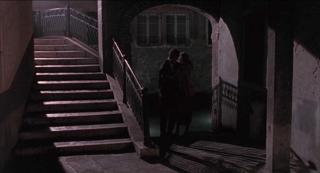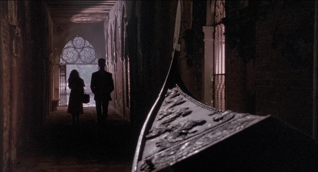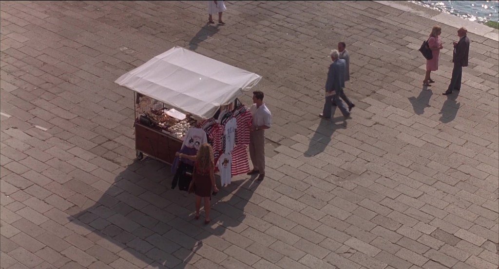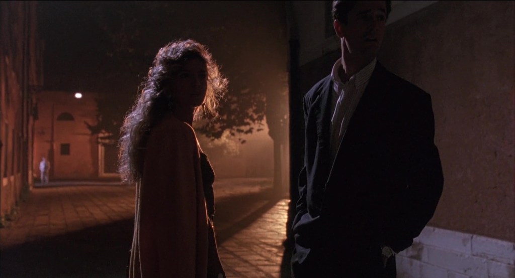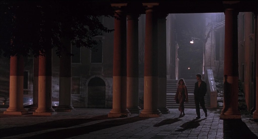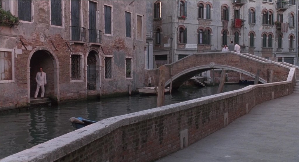 “Walken plays a Venetian aristocrat named Robert. Nattily decked out in a white suit, he follows an attractive British couple – Mary (Natasha Richardson) and Colin (Rupert Everett) – around the streets and canals, surreptitiously taking photos.” – PT
