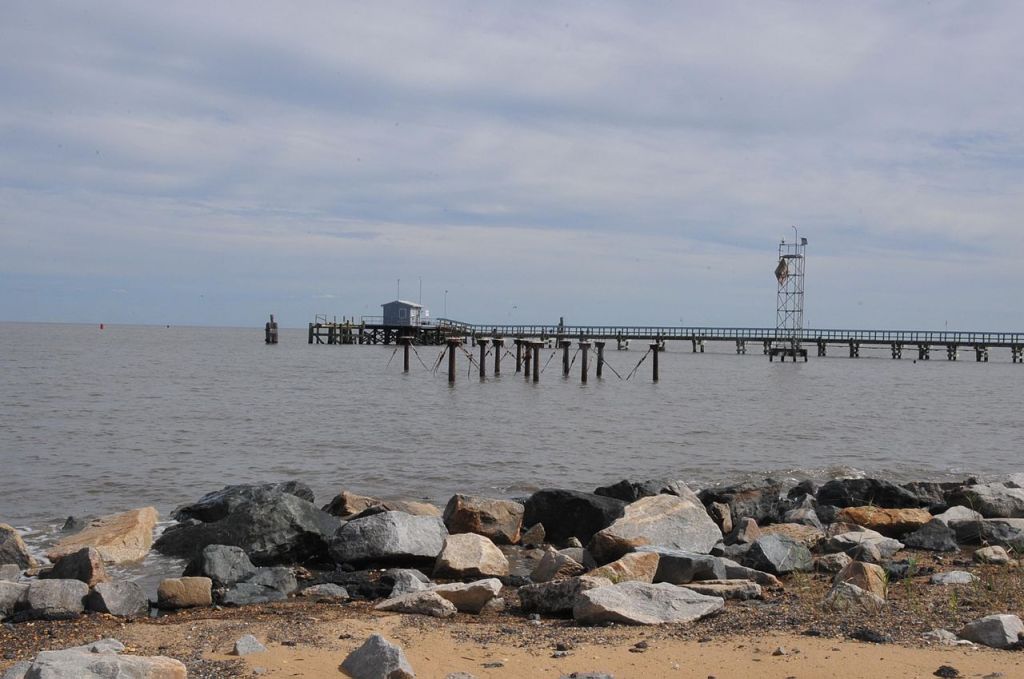 An accidental fire in 1984 destroyed the lighthouse. Only the iron screw-pile foundations remain. (Photo from Jerrye & Roy Klotz, MD in Wikipedia Commons).