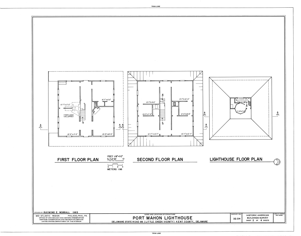 Text excerpted in italics and images reproduced below from the Historic American Building Survey (HABS) No. DE-214 (1982), conducted by William J. Cohen, AICP (Project Director and field photographer), Frank R. Selby (historical research and narrative writing), Raymond E. Worrall (delineator of measured drawings and site plan), and Kevin R. Bender (prepared archival 4×5” photos):