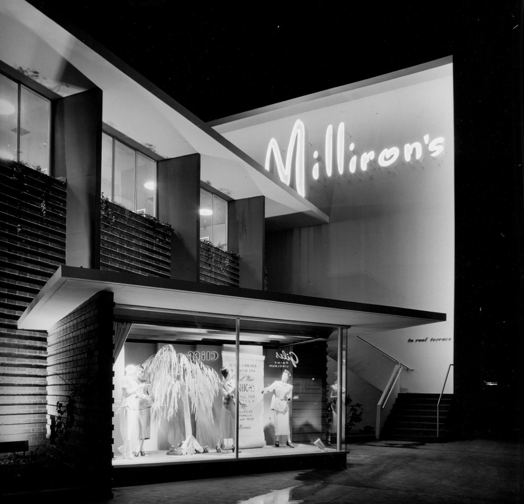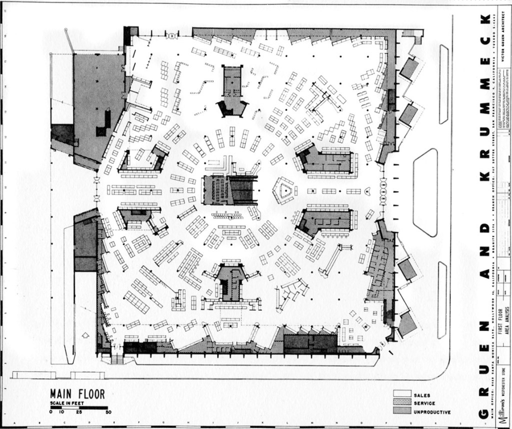 Milliron’s Department Store / Gruen and Krummeck Architects with Karl Van Leuven Jr. as Associate in Charge of Project / Westchester, Los Angeles, California, USA / 1949 / Structural Engineerg: Kourken Bardizbanian / Mechanical Engineering: John J. Cullinane and Hilberg, Byler & Hengstler / Electrical Engineering: H. L. Dietz and Foster K. Sampson / Architectural Supervision: Max Reder Horwitz, AIA / Extant address: 8739 S Sepulveda Blvd