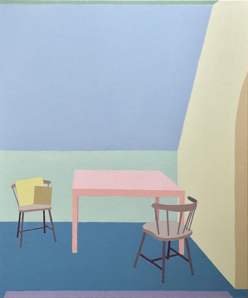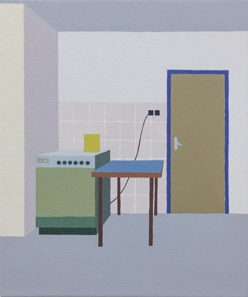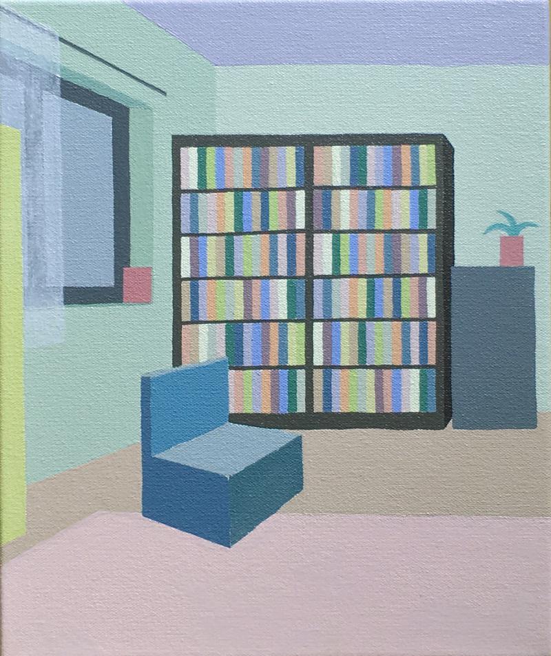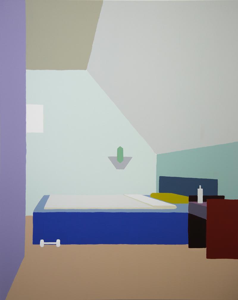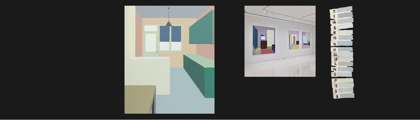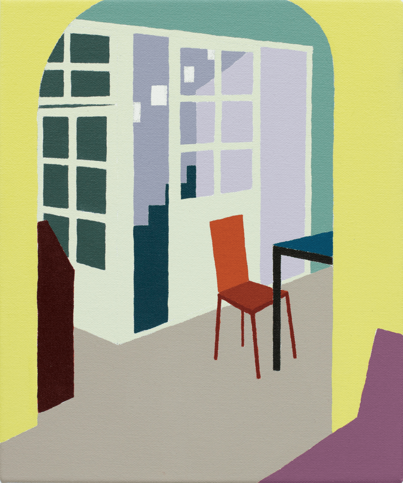 I pair potentially pleasant domestic interiors rendered in possibly seductive colours with a sure sense of alienation expressed by reductive and non-hierarchical paint application. My methodical, controlled approach to technique lets up, however, through touch: my hand trembles where colour blocks meet forming gently wavering lines. I want always to make paintings that are affecting and alive.